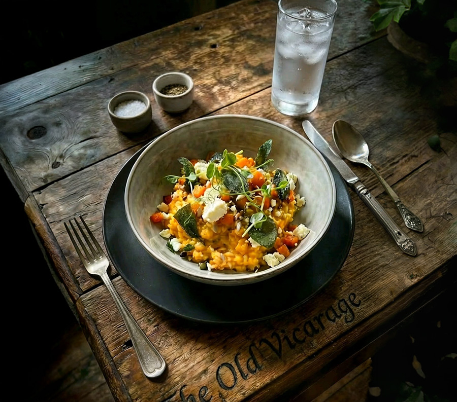 Butternut Squash & Sage Risotto, Feta Crumb (v) (vgo) £15.50